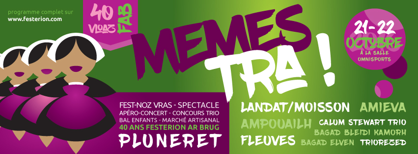 Biniou/Cornemuse-Bombarde-Tambour en acoustique. Répertoire libre comportant au minimum un air à danser. Les musiciens doivent présenter une suite musicale de 7 minutes (+/- 1 minute). Toutes les percussions mobiles sont autorisées. Ce concours a pour objectif de mettre en avant la créativité de la musique bretonne actuelle en récompensant l’originalité et la qualité des trios. Les trois premiers recevront des prix et le groupe vainqueur aura le privilège de rejouer sa suite lors du fest-noz et signera un contrat avec Kendalc'h pour animer Tradi'Deiz le 9 avril 2017. Contact et inscription : Damien Le Dortz - 06 72 68 51 73 - ledortz.damien@gmail.com.